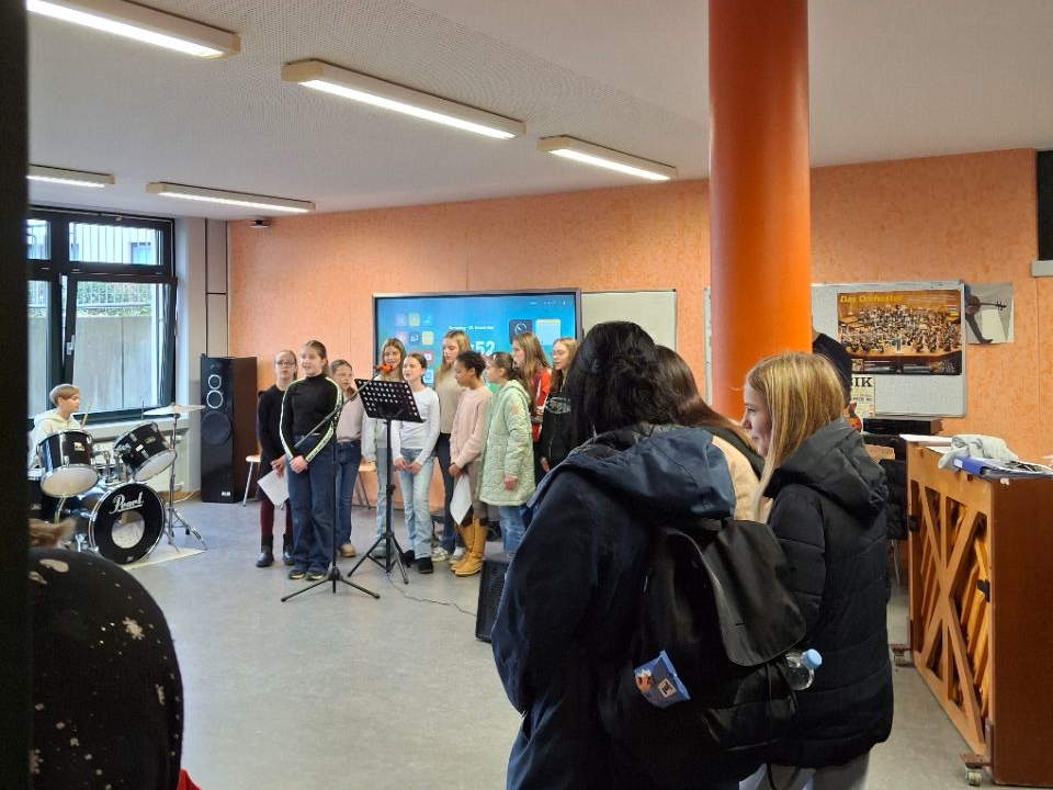 Am 22.05. lernten die Schülerinnen und Schüler der zukünftigen Stufe 5 ihre Klassenlehrer kennen. Frau Rannacher und Herr Grünewald begrüßten Schüler und Eltern, der Förderverein stellte sich vor und auch die Band AG spielte. Die Kinder gingen zu ihren jeweiligen Klassenlehrern auf die Bühne und danach zu den Klassenräumen und hatten so Gelegenheit, sich gegenseitig kennenzulernen. Währenddessen tauschten sich die Eltern in der Cafeteria aus.